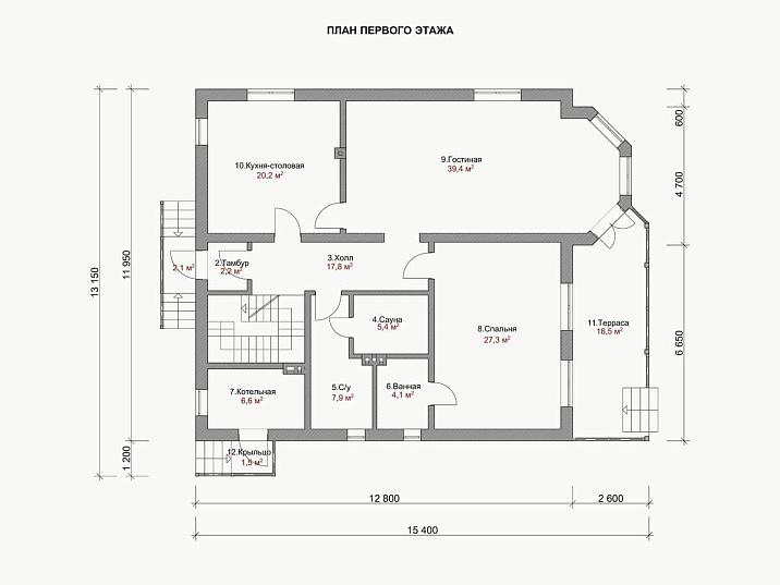 - Размер дома 12х12 м