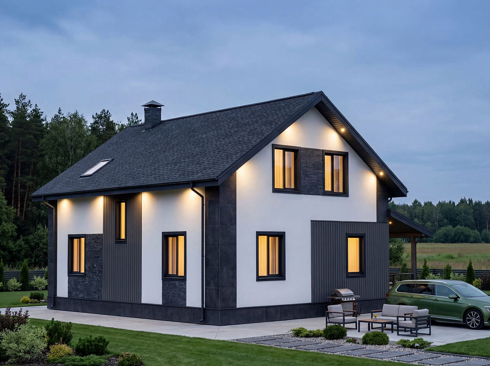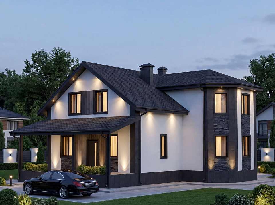 Дом из бетона Лубава-2 одноэтажный с мансардой 15х15