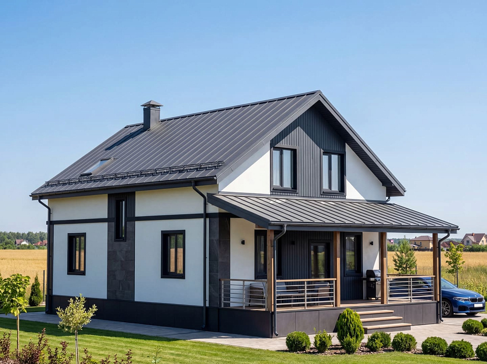 Дом из теплоблоков Корвин одноэтажный с мансардой 12х12