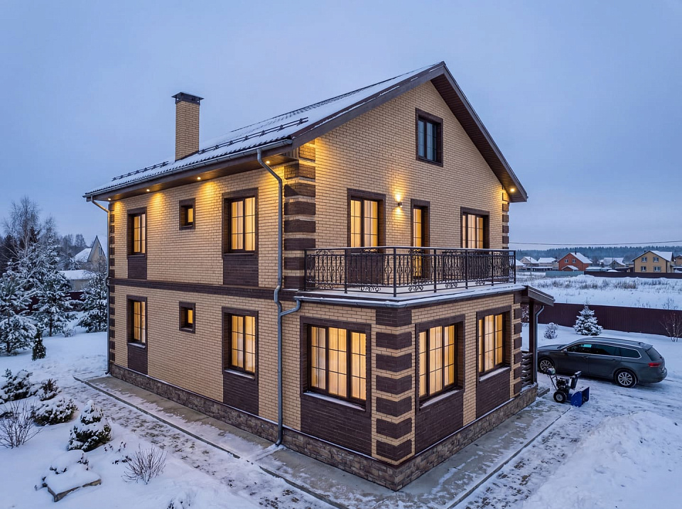 Дом из щелевого кирпича Бор 3 двухэтажный 14х14
