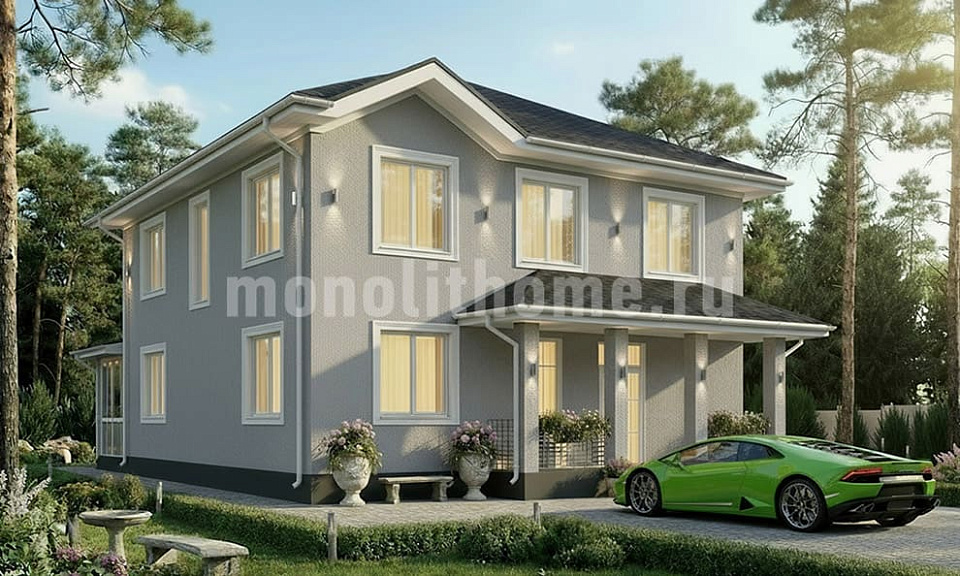 Дом из поризованного кирпича Форма 2 двухэтажный 12х12