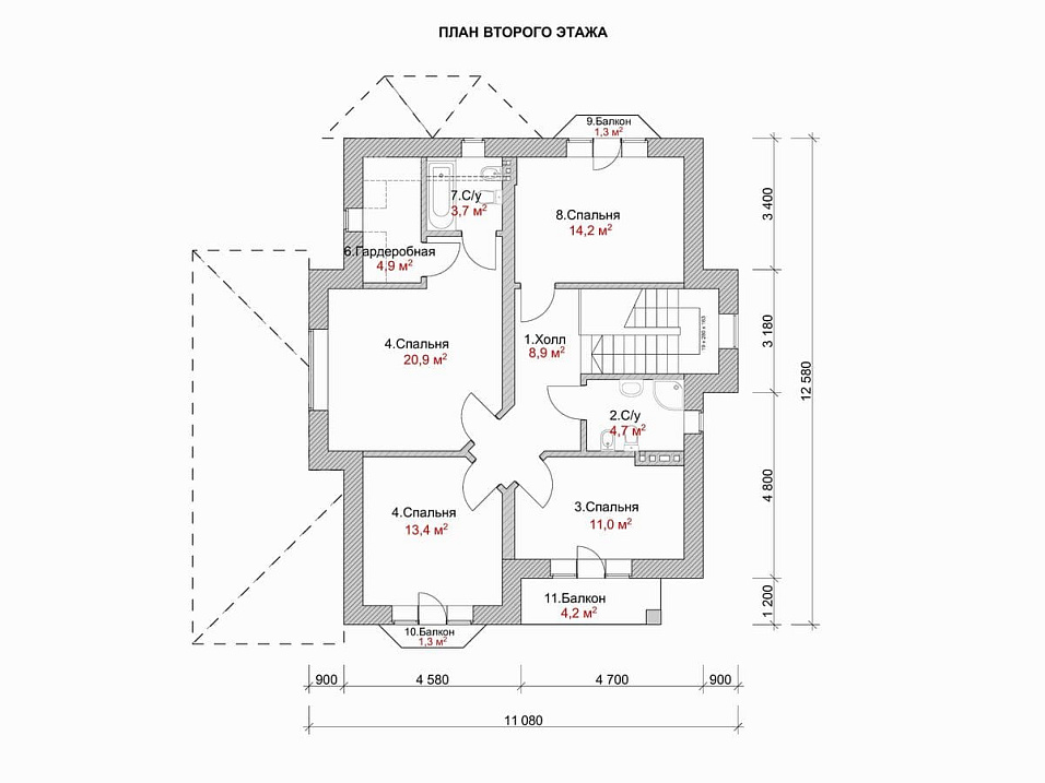 Дом из газобетона Гассен 1 двухэтажный 11х11