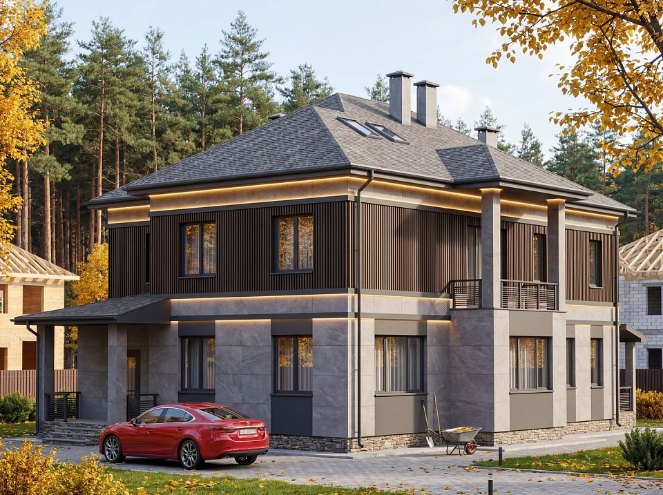 Дом из газосиликата Грюнвальд 2 двухэтажный 12х12