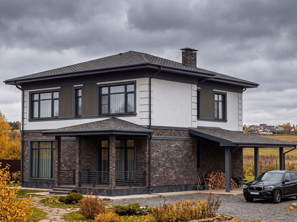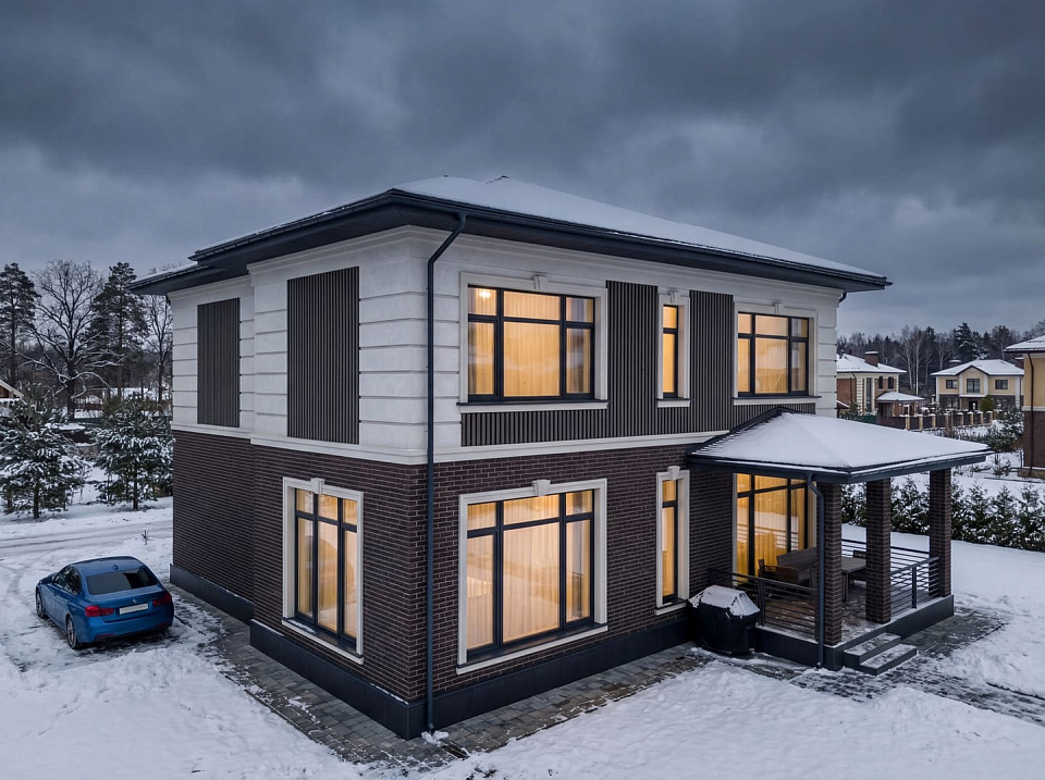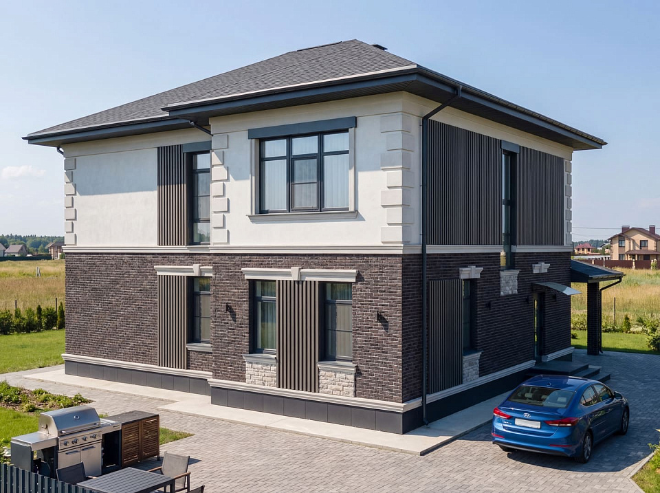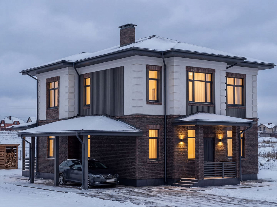 Дом из щелевого кирпича Гассен двухэтажный 12х12