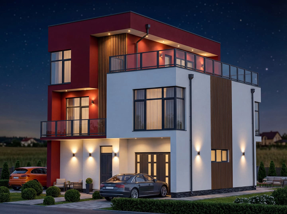 Дом из керамзитобетона Штутгард 9 трехэтажный 9x11