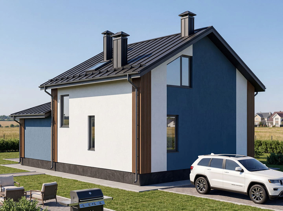 Дом из керамзитобетона Валдай 3 одноэтажный с мансардой 11х11