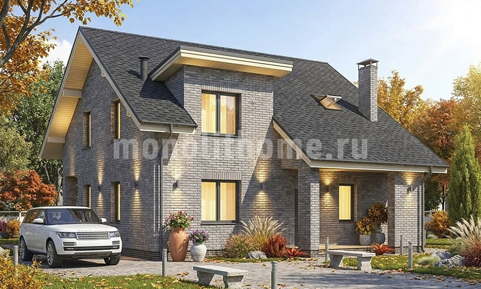 Дом из поризованного кирпича Равен 2 одноэтажный с мансардой 14х14