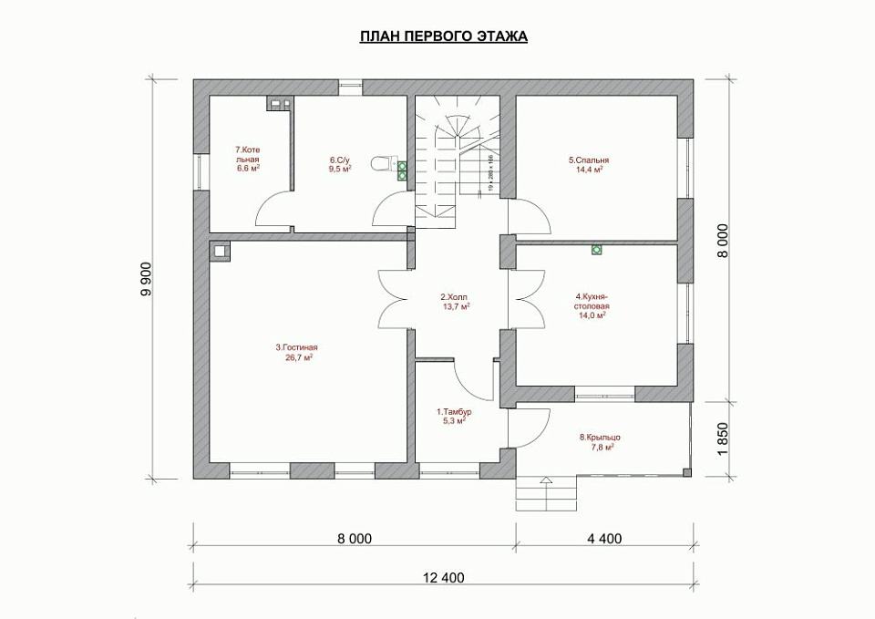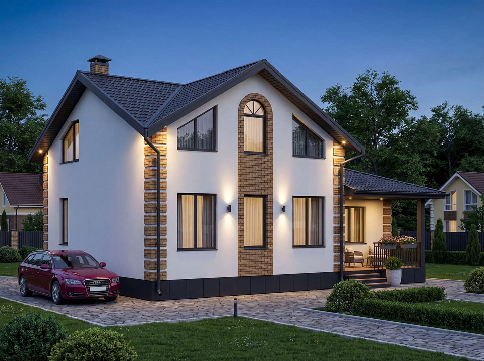 Дом из крупноформатных Меридиан одноэтажный с мансардой 8x9