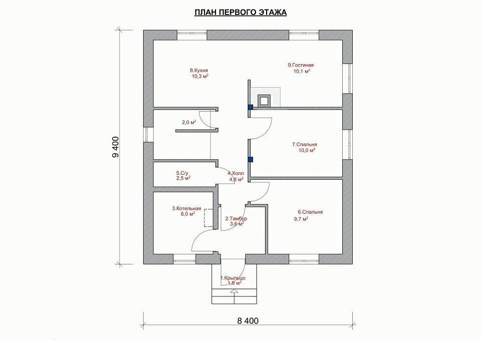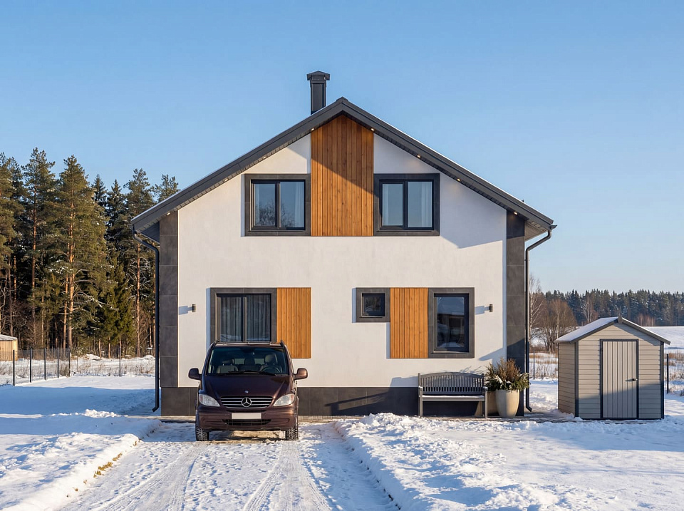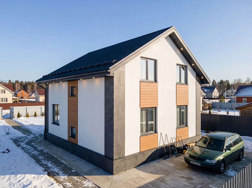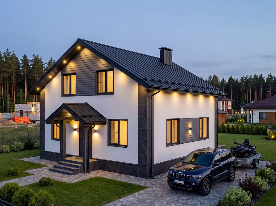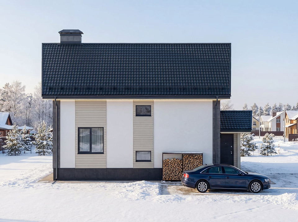 Дом из керамзитобетона Плёс 1 одноэтажный с мансардой 9x10