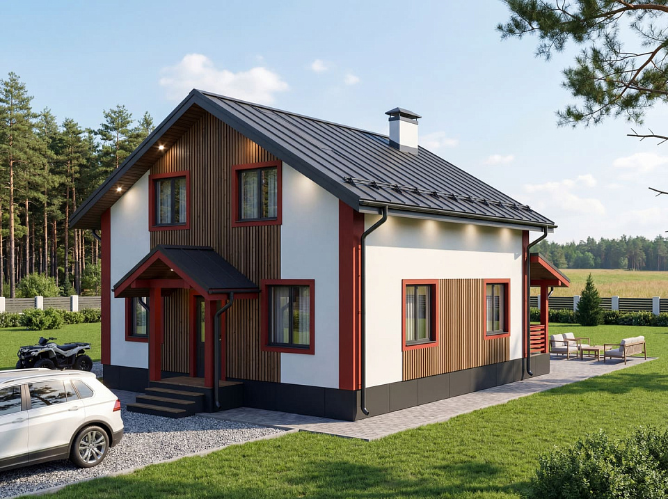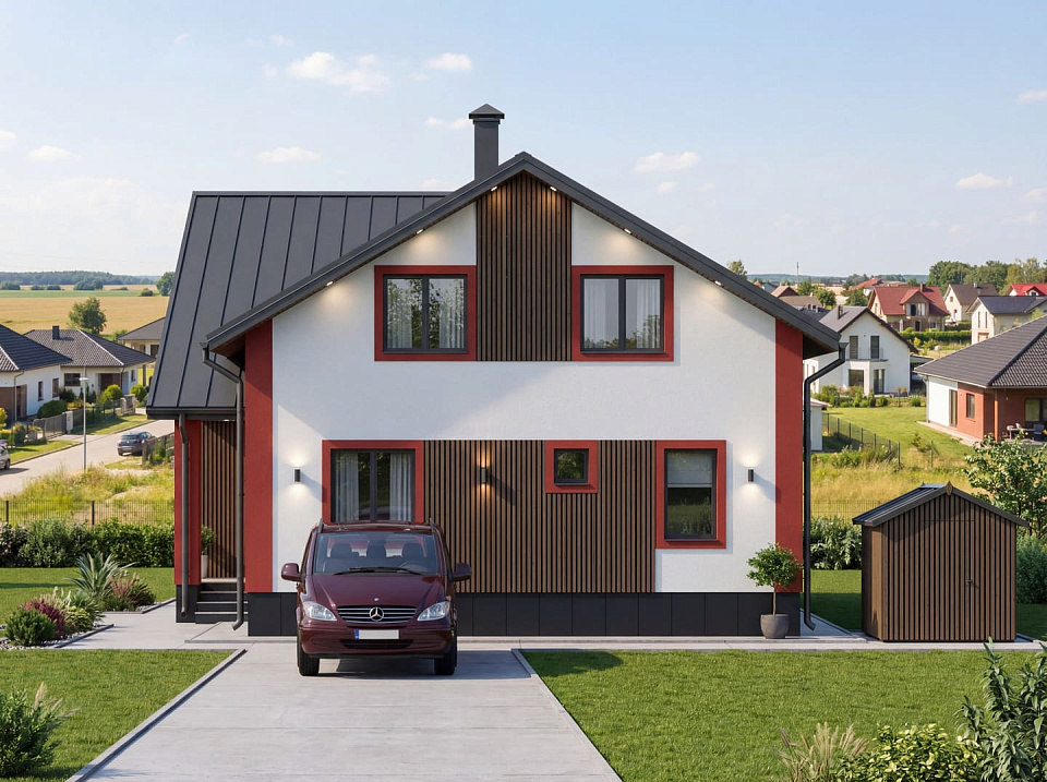 Дом из теплоблоков Плёс 2 одноэтажный с мансардой 9x11