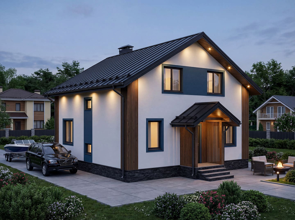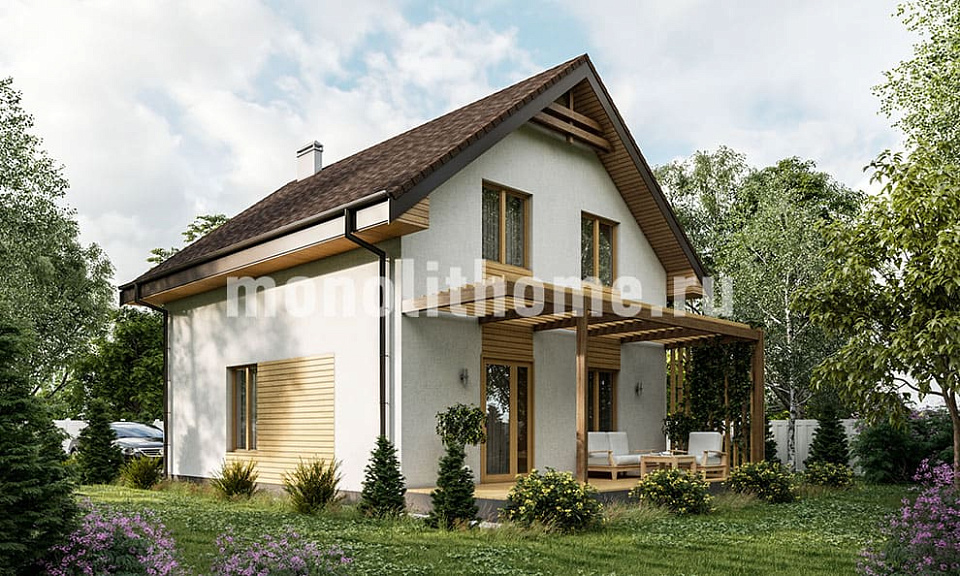 Дом из полистеролбетона Плёс 3 одноэтажный с мансардой 9x12