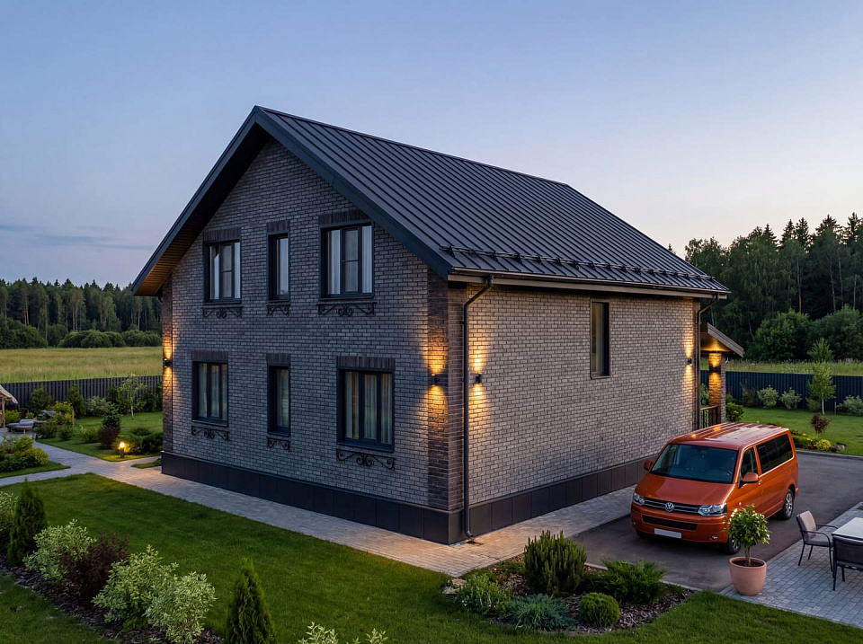 Дом из пеноблоков Балтийский одноэтажный с мансардой 11х11