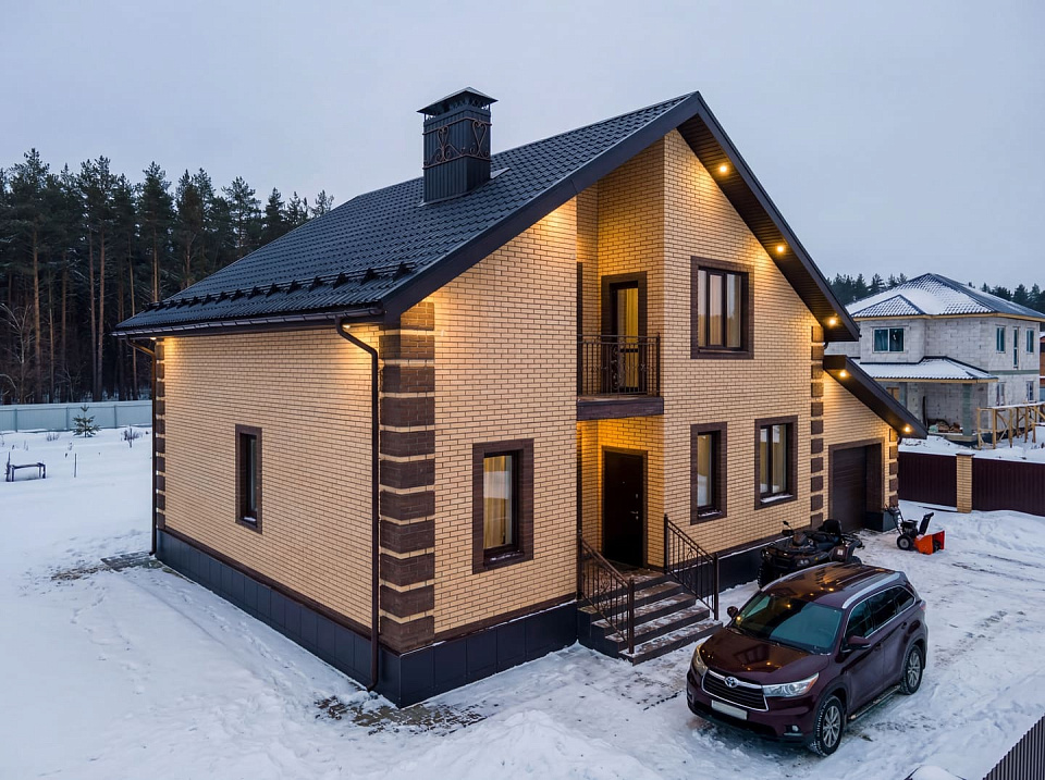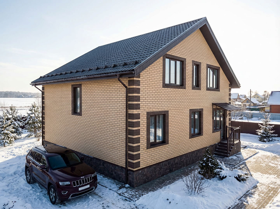 Дом из арболита Яхрома 5 одноэтажный с мансардой 10х10