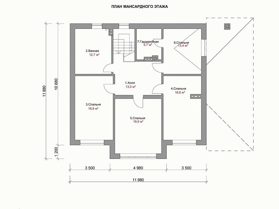 Дом из газосиликата Мальково одноэтажный с мансардой 14х14