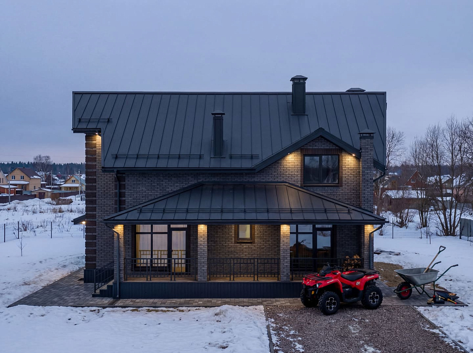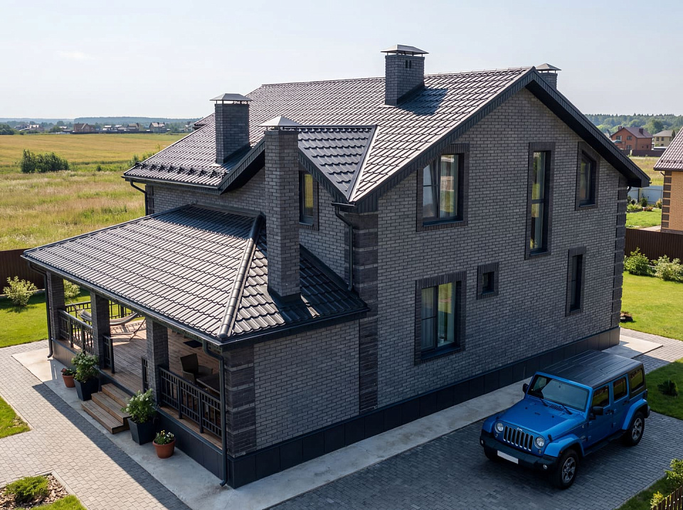 Дом из керамического кирпича Амадей-2 одноэтажный с мансардой 15х15