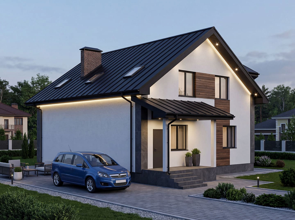 Дом из керамзитобетона Марьино 1 одноэтажный с мансардой 11х11