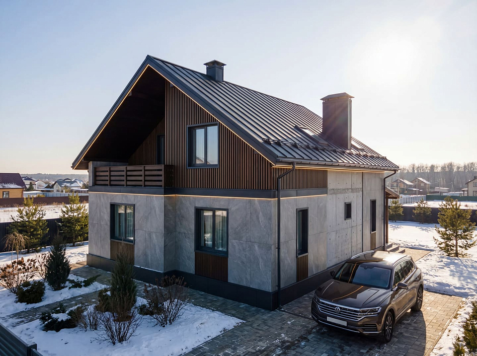 Дом из арболита Слобода 5 одноэтажный с мансардой 13х13
