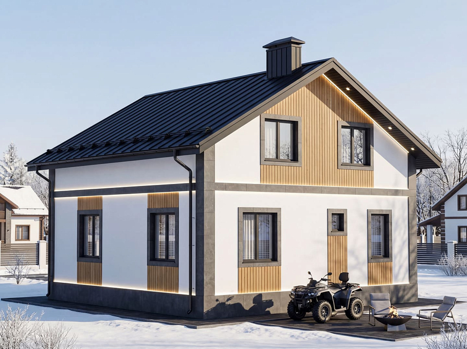 Дом Меридиан 2 одноэтажный с мансардой 8x9
