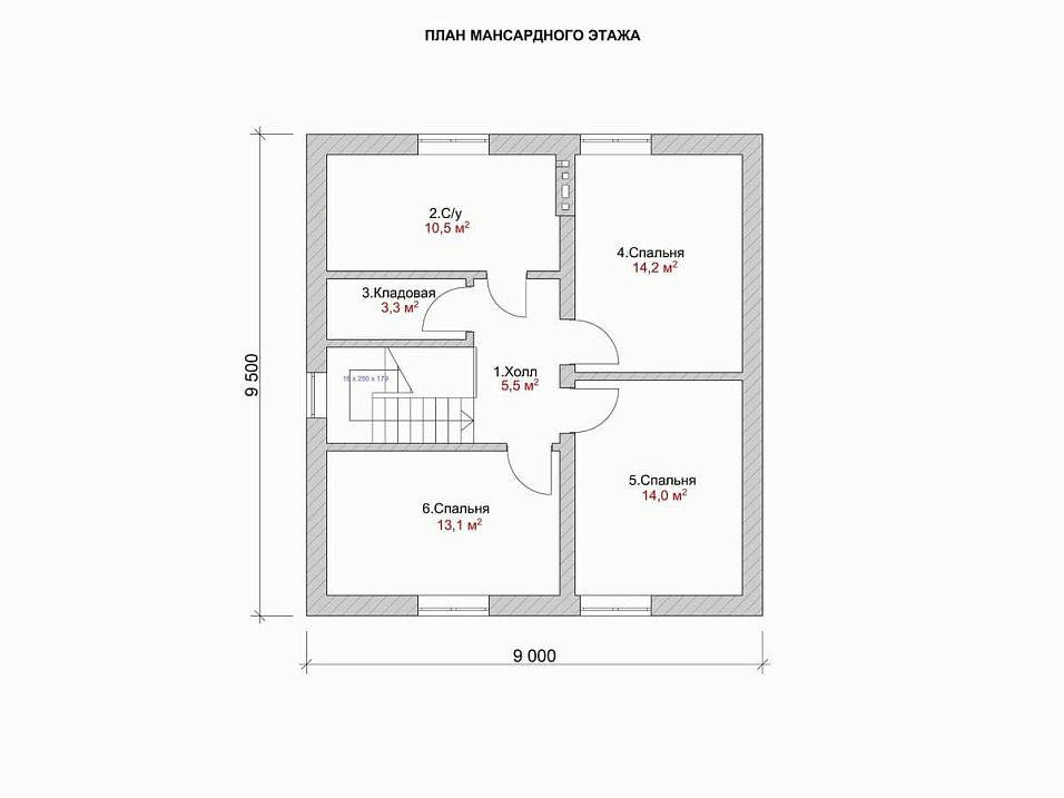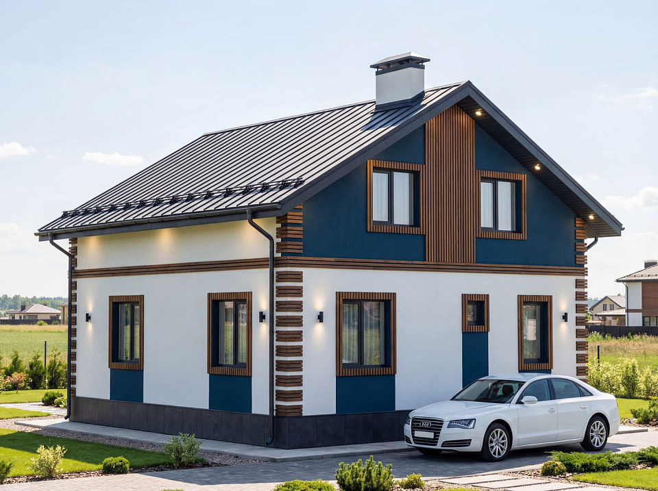 Дом из газобетона Мещёра одноэтажный с мансардой 9х9