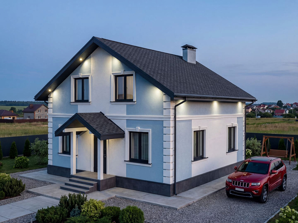 Дом из пеноблоков Роща 3 одноэтажный с мансардой 9х9