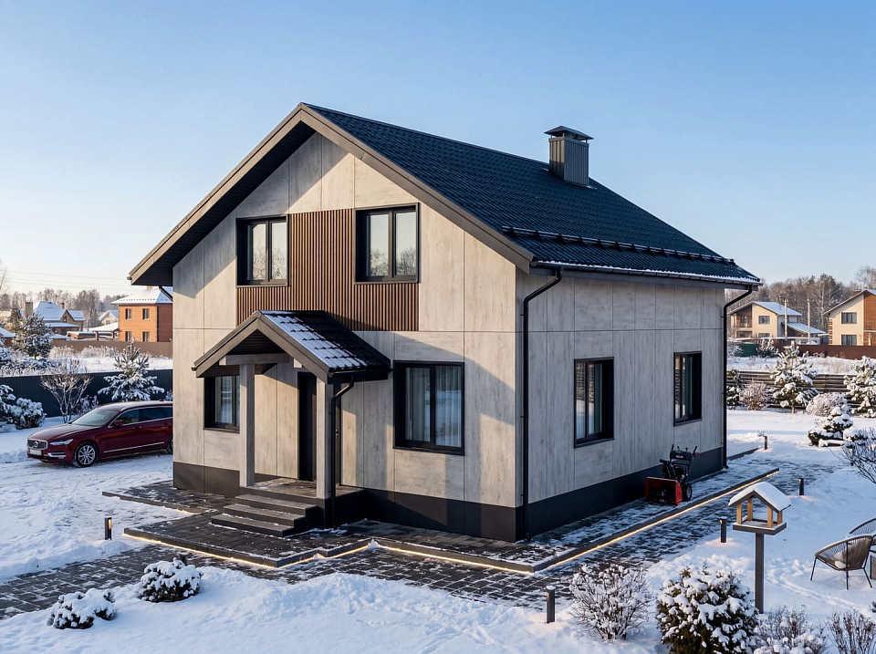 Дом из керамзитобетона Кедрон 2 одноэтажный с мансардой 9х9
