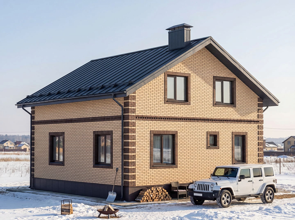 Дом из полистеролбетона Роща 6 одноэтажный с мансардой 8x11