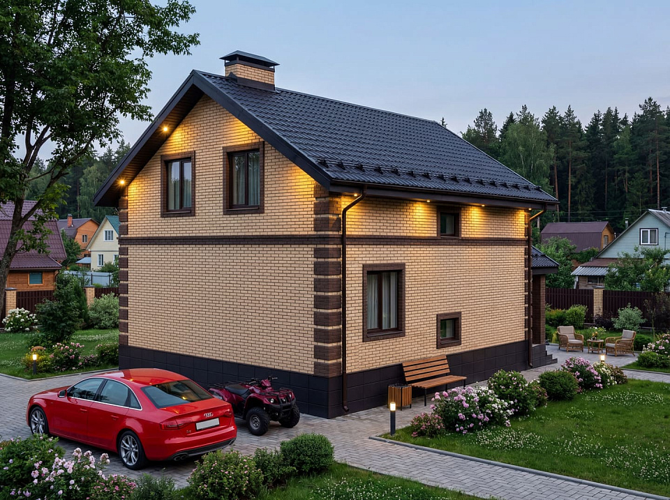 Дом из керамзитобетона Кедрон 2 одноэтажный с мансардой 9х9