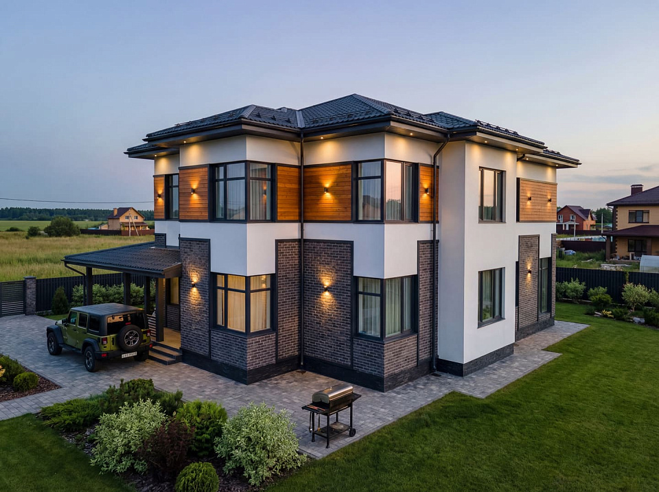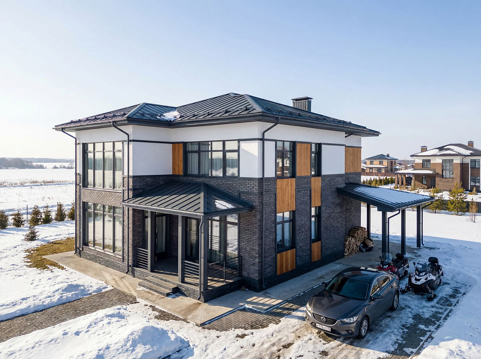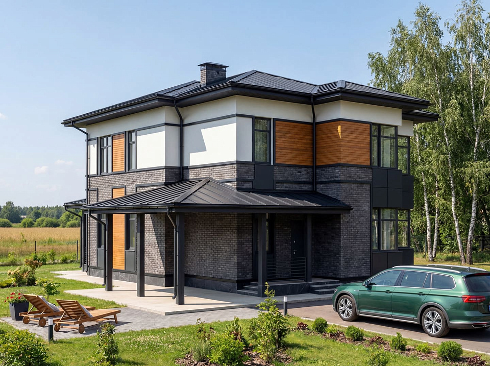 Дом из щелевого кирпича Птичное 24 двухэтажный 13х13
