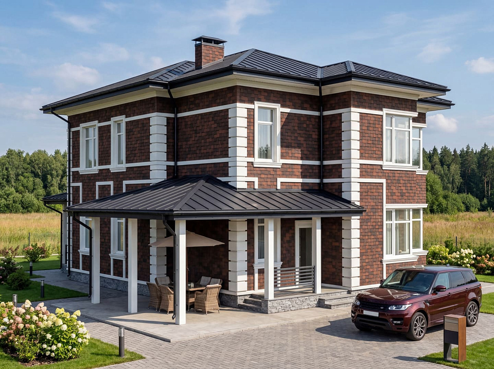 Дом из керамического кирпича Птичное 25 двухэтажный 14х14