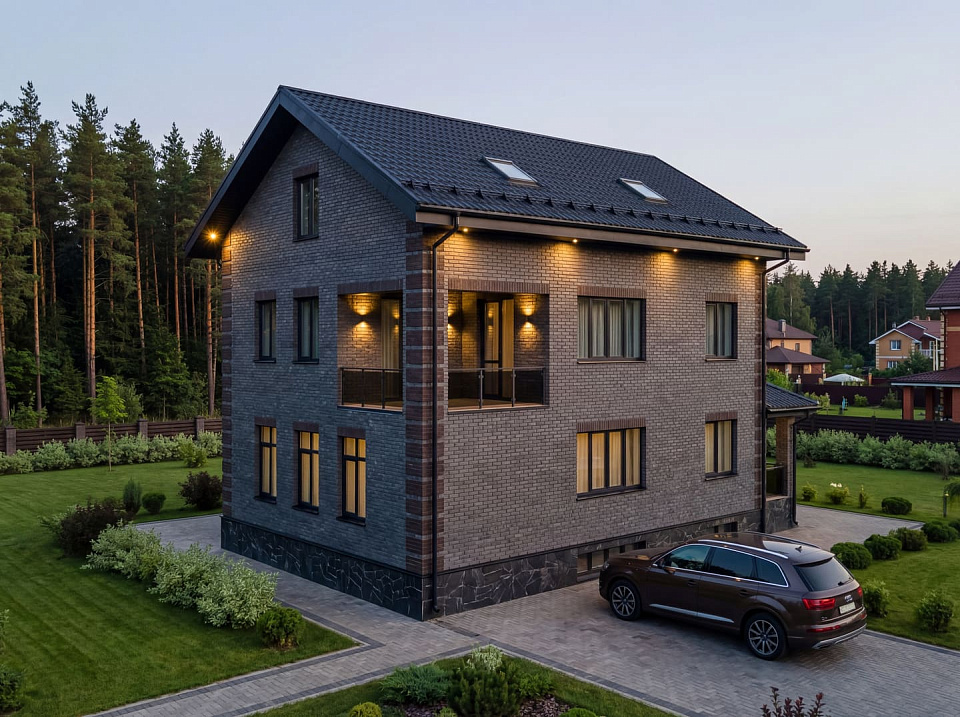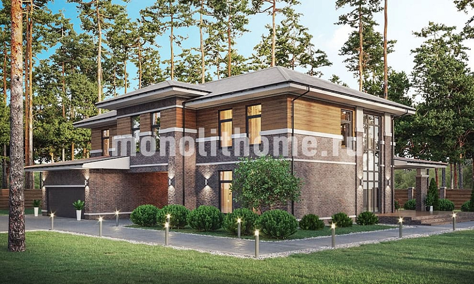 Дом из поризованного кирпича Заречный двухэтажный 15х15