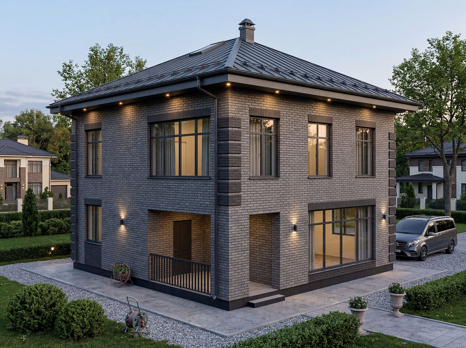 Дом из керамического кирпича Малкольм 1 двухэтажный 11х11