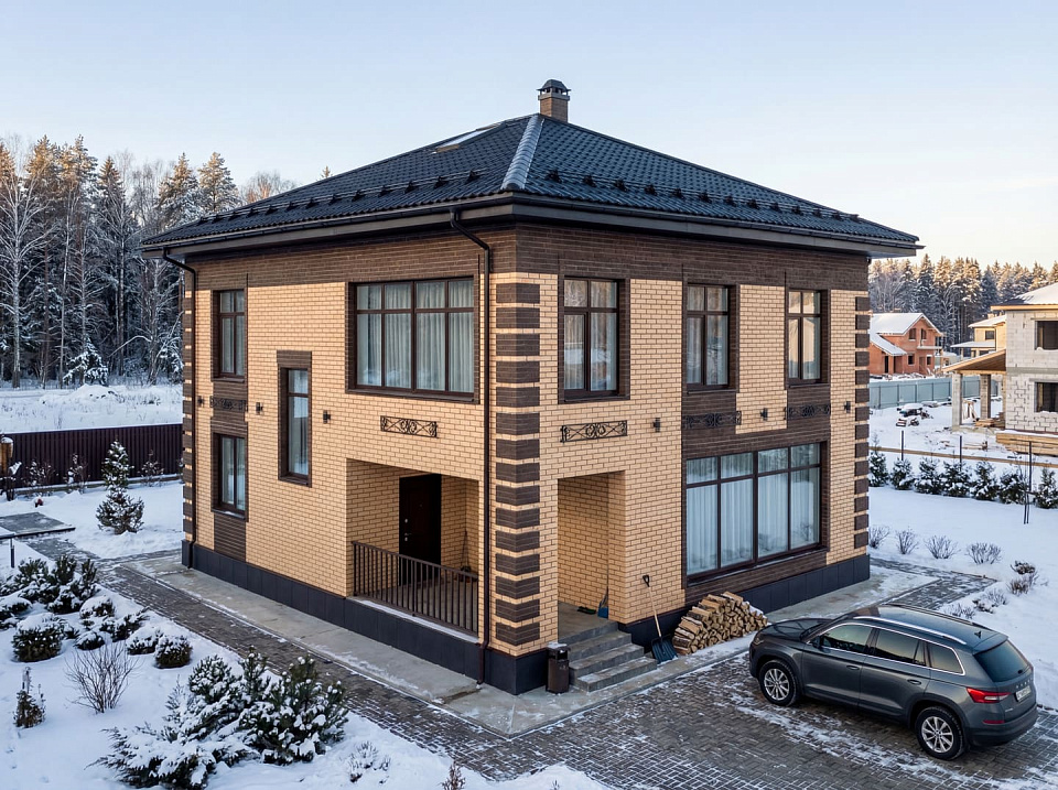 Дом из полнотелого кирпича Малкольм 2 двухэтажный 12х12