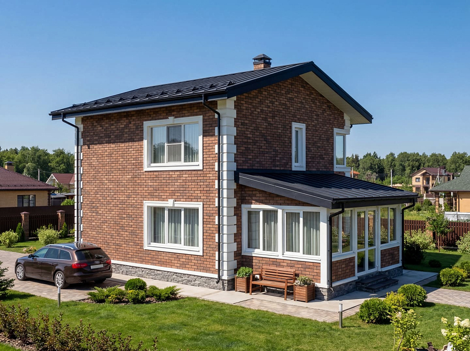 Дом из керамзитобетона Карпаты одноэтажный с мансардой 9х9