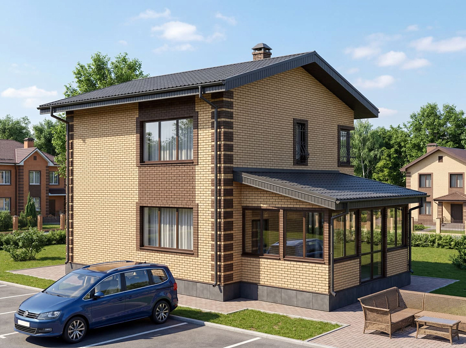 Дом из керамического кирпича Эльза 7 двухэтажный 12х12