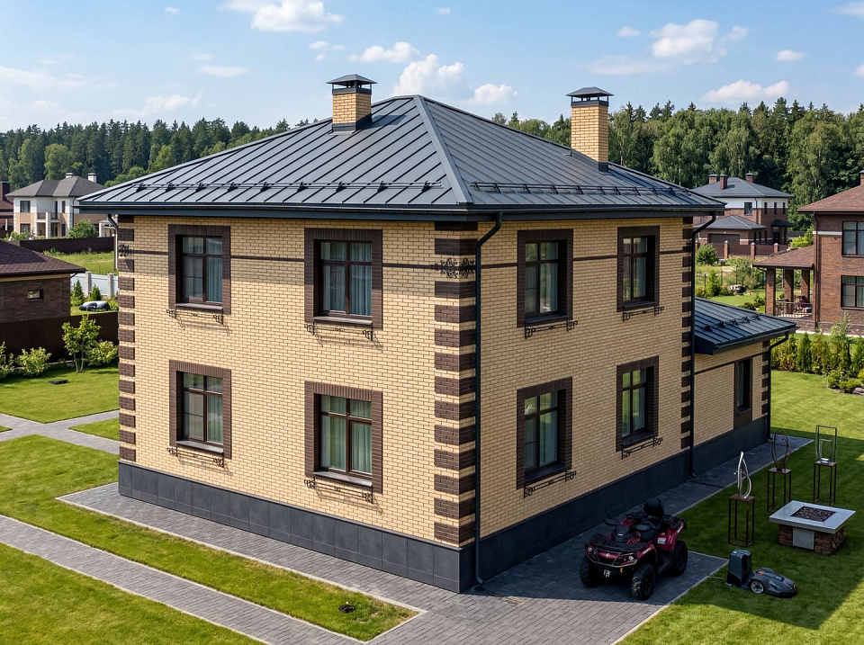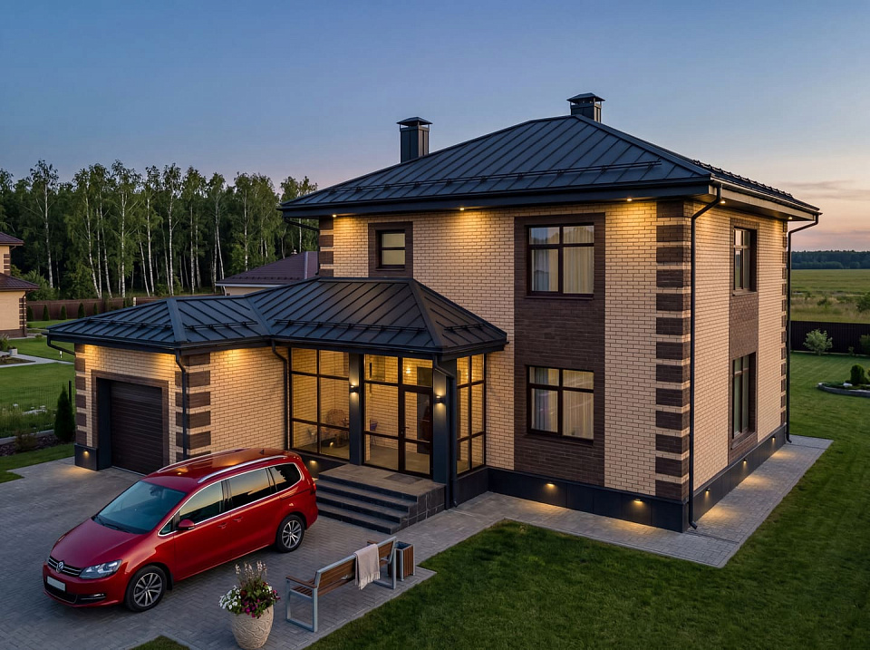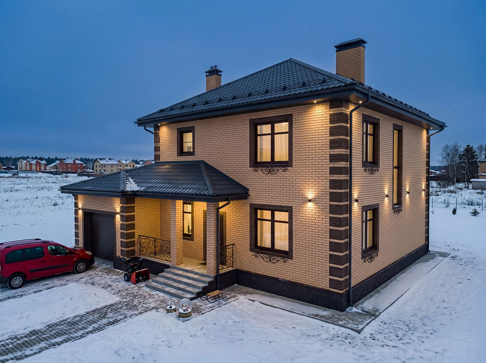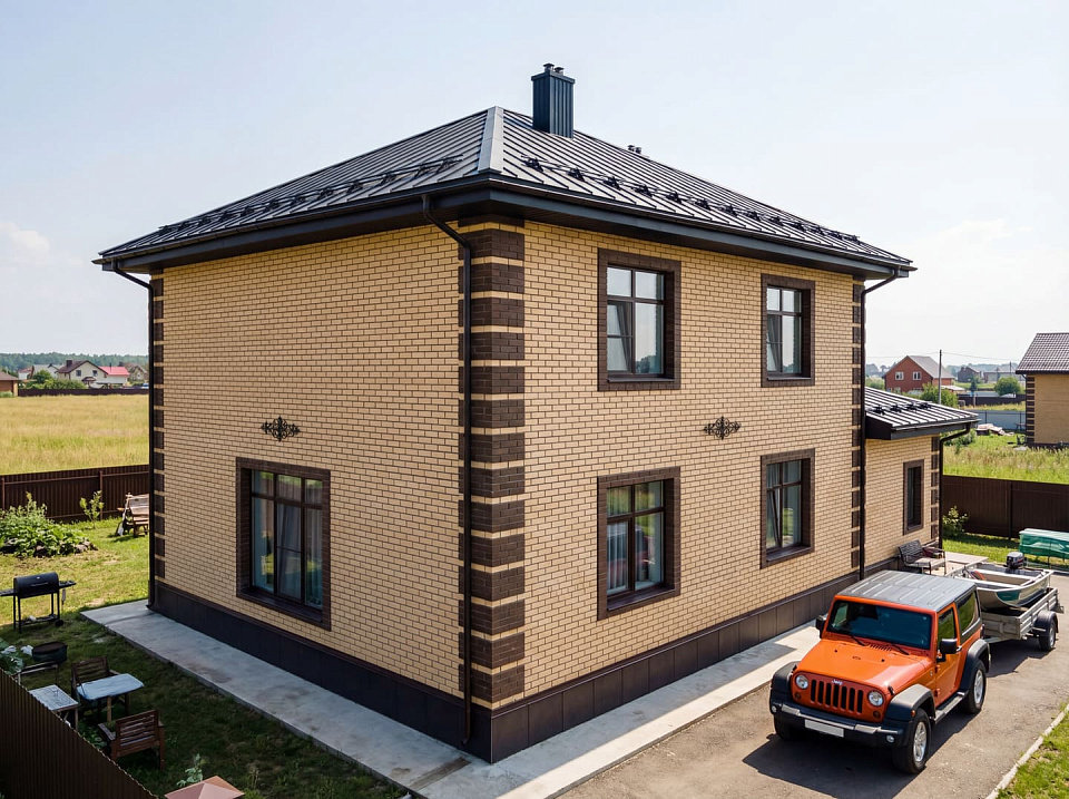 Дом из щелевого кирпича Аврора двухэтажный 9х9