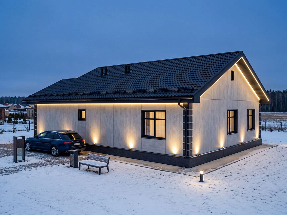 Дом из крупноформатных Магнум одноэтажный с мансардой 10х10