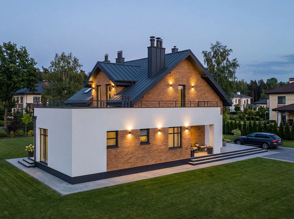 Дом из керамического кирпича Шерон 4 одноэтажный с мансардой 9x12