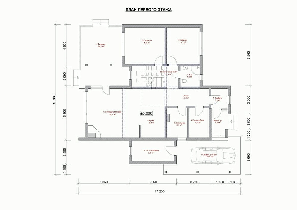 - Размер дома 13х13 м