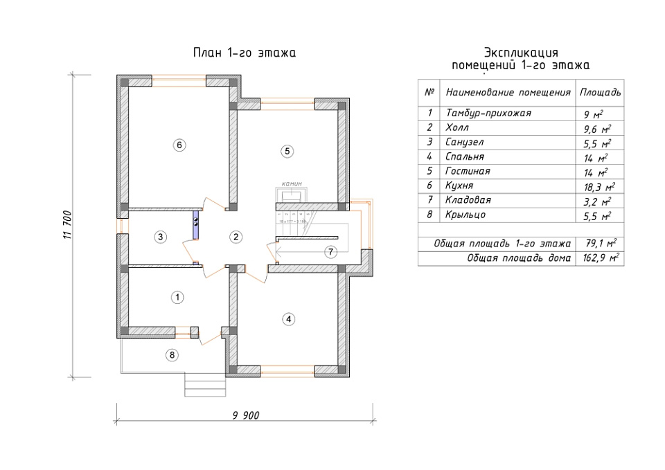 Дом из поризованного кирпича Камелот 2 двухэтажный 9x11