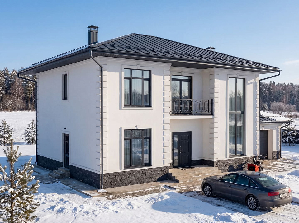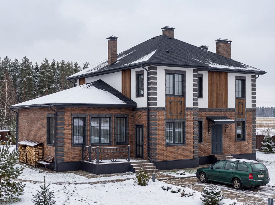 Проектом предусматривается два этажа плюс практичный чердак. Планировка комнат характеризуется разумностью и принимает во внимание размещение инженерных систем, вид из окон и расположение сторон света. Планировка включает 3 комфортных спальни и 3 санузла. Размер помещений - 238 м2, размер кухонного пространства 34 м2. Для этого коттеджа мы советуем применить фундамент - утепленный шведский фундамент. Это наиболее современный фундамент, оптимально подходящий для загородного строительства в нашей климатической зоне. Материал несущих стен этого коттеджа - щелевой кирпич. В случае необходимости мы можем переделать этот проект под другой материал, адаптировать расположение помещений и принять по внимание любые другие ваши требования.