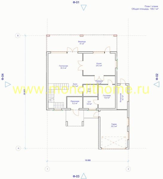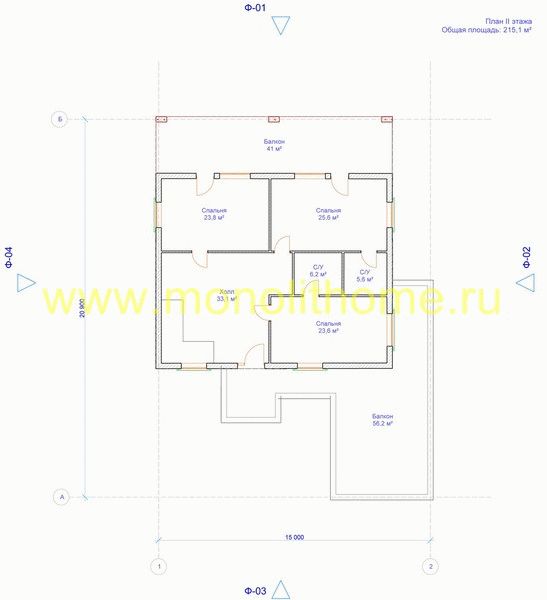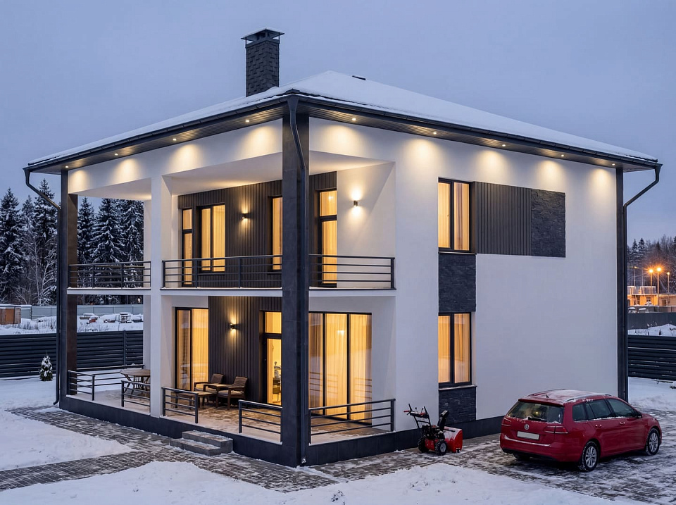 Дом на монолитном каркасе Мякинино двухэтажный 15х15