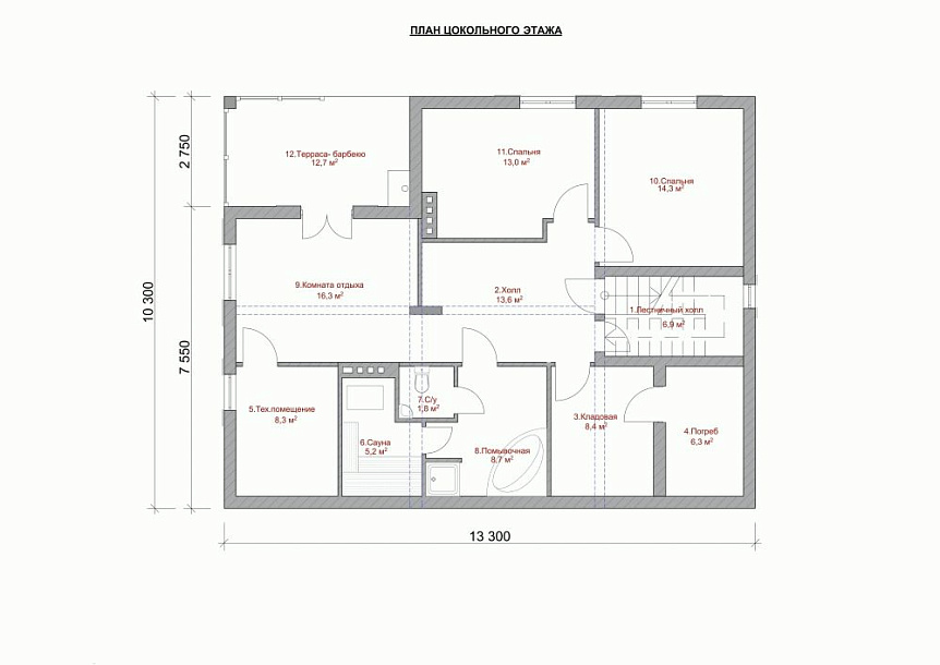 Представляем вашему вниманию проект дома в стиле минимализм "Зельден" спроектированный нашими конструкторами по индивидуальному заказу. Отличительной чертой представленного проекта является эксплуатируемый цоколь, в котором легко разместятся просторная кладовая и винный погреб. Помимо этого, подвал экономит площадь участка и позволяет поднять уровень пола первого этажа выше над землей. Это отличное решение для участков с большим перепадом высоты.