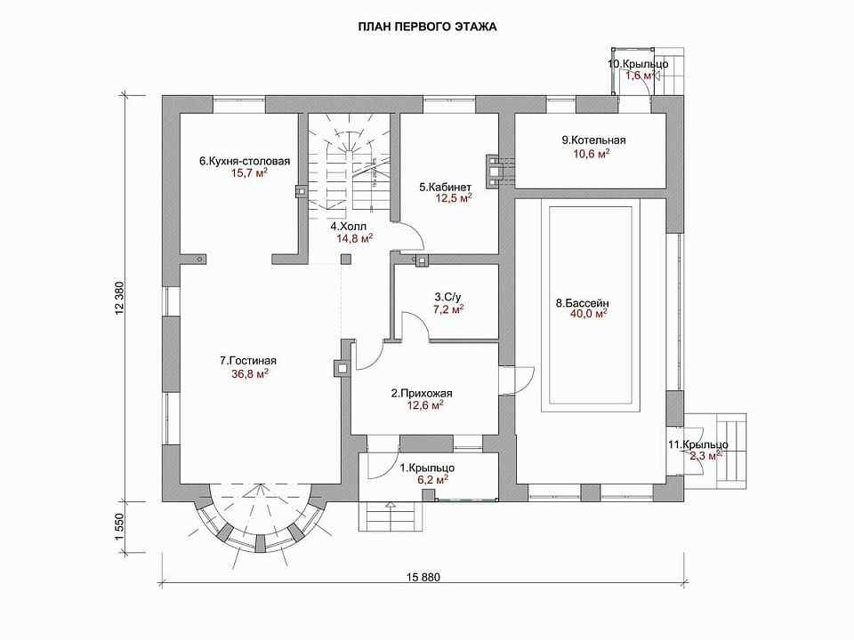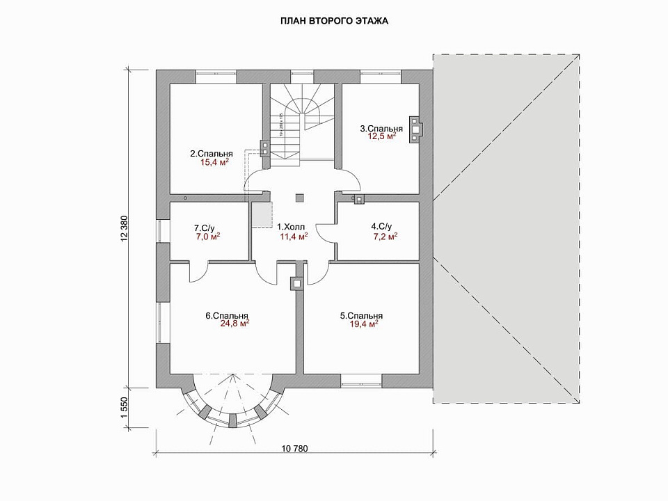 Дом в два этажа и нежилой чердак. Планировка пространства дома характеризуется продуманностью и учитывает размещение инженерных систем, вид из окон и расположение сторон света. Планировочные решения коттеджа предусматривают 4 удобных спальни и 3 санузла. Размер всех помещений составляет 258 м2, площадь кухонного пространства 10 м2. В этом доме мы предусматриваем тип фундамента - утепленная шведская плита. Это самый теплый фундамент, великолепно подходящий для загородного строительства в нашей климатической зоне. Стены этого здания - щелевой кирпич. По вашему решению мы можем поменять данный проект под другой материал, уточнить планировки дома и учесть любые другие требования заказчика.