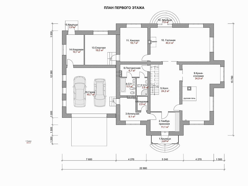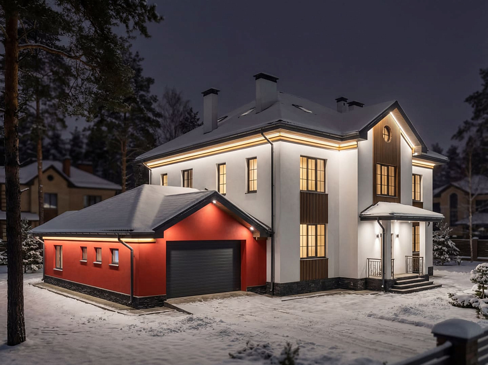 Представляем проект дома высокой ценовой категории "Горки-2" созданный в компании Монолит-домстрой по эскизам заказчика. Отличительная черта проекта это - просторный крытый гаражный бокс на два а/м. Это отличное решение для большой семьи, которая владеет двумя автомобилями. В таком гараже можно с легкостью поместить мотоцикл или квадроцикл, отыскать место под садовый инвентарь и инструмент. Большое пространство гаража позволит установить мойку для вашей машины.