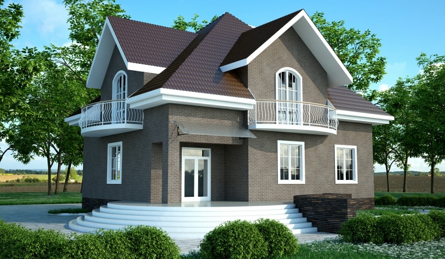 Дом из арболита Карелия одноэтажный с мансардой 12х12